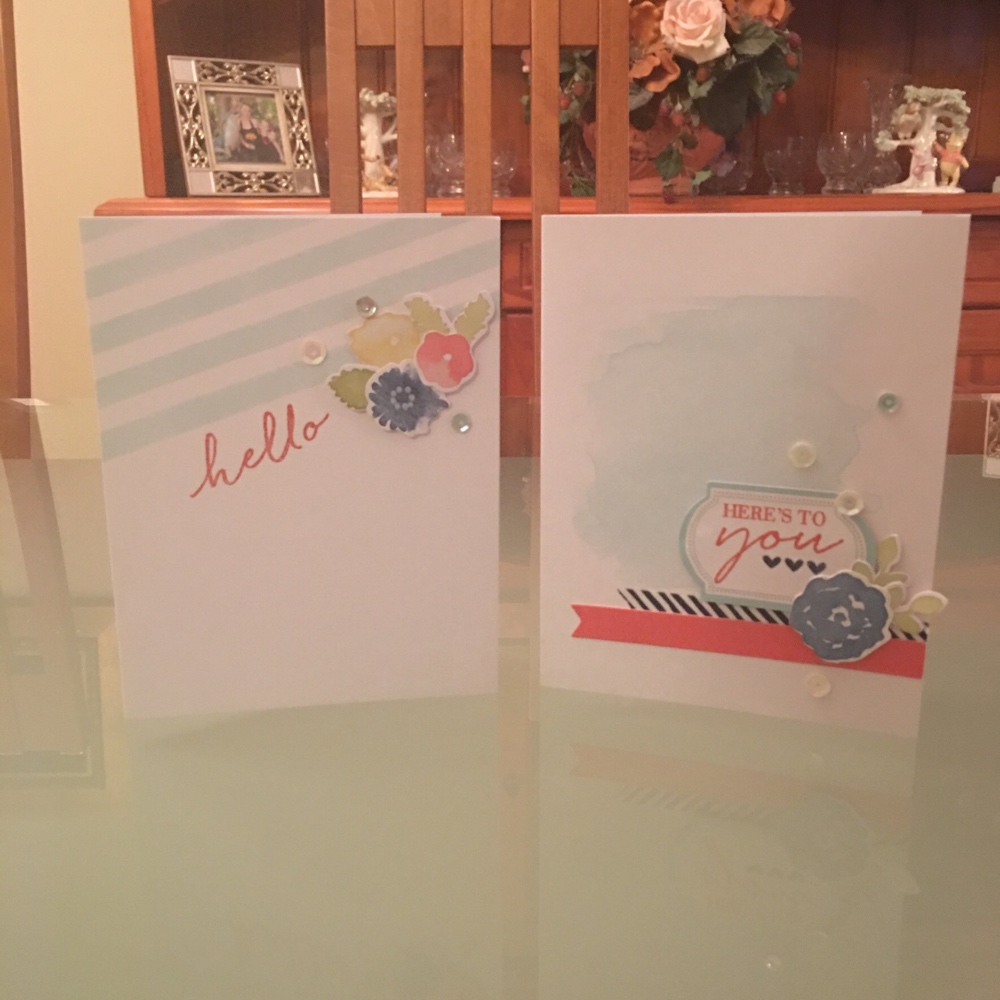 News flash........I'm addicted. I'm addicted to paper, cards, scrap booking, mini albums, and mixed media. And now I'm totally the in love with Stampin' Up's card kits. I've been on holidays at my mum's place for a couple of days and there was no way I could survive without dipping my inky fingers in the crafty pot. So I decided to bring the Watercolour Wishes card kit with me and I made the cards last night. WOW! This was soooo much fun! Stampin' Up have made it super easy for the beginner to create first class cards in a short period of time. I decided to do the cards as suggested, however, when I return home I plan to add my own flair to them. That's the beauty of these card kits. You can keep them as clean and simple as you like or if you prefer, bling them up a bit. The choice is yours. Below are some pictures so that you can see exactly how the cards look as suggested by Stampin' Up. If you would like any help with the Watercolour Wishes kit or any other products, please contact me at your convenience.
